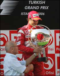 F1 Türkiye GP’sine Soruşturma İstanbul’da düzenlenen Formula 1 Petrol Ofisi Türkiye Grand Prix’sinde birinci gelen Ferrari pilotu Felipe Massa’ya kupayı KKTC Cumhurbaşkanı Mehmet Ali Talat’ın vermesi, kriz yarattı. Uluslararası Otomobil Federasyonu FIA’nın sözcüsü, Türkiye’nin siyasi tarafsızlık ilkesini ihlal etmiş olabileceği endişesiyle geniş kapsamlı bir soruşturma başlatıldığını söyledi. |